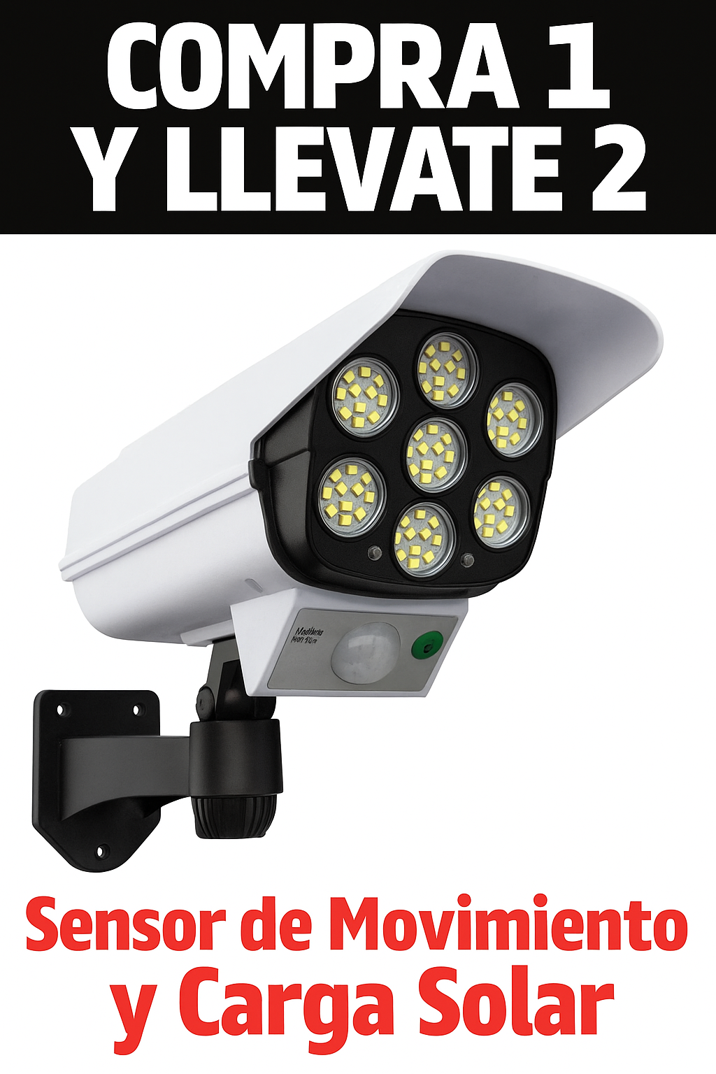 🌞 Carga 100% solar + 🚨 sensor de movimiento que detecta hasta los movimientos más pequeños. Es la solución perfecta para quienes buscan seguridad, ahorro y practicidad en un solo producto. 🎁¡COMPRA 1 Y LLEVATE 2!🎁 ✅ Sensor de Movimiento Inteligente – se enciende automáticamente al detectar movimiento, alejando intrusos. ✅ Energía Solar Sostenible – sin costo de electricidad, se carga de día y ilumina de noche. ✅ Instalación Rápida y Sin Cables – sin electricista, se fija en minutos. ✅ Diseño 2 en 1 – apariencia de cámara de seguridad + iluminación LED potente. ✅ Ahorro Garantizado – iluminación gratuita todos los días, sin aumentar tu factura de luz. No solo ilumina áreas exteriores, sino que también funciona como elemento disuasorio contra intrusos.🚨 ⭐️Su panel solar integrado garantiza carga completa durante el día, ofreciendo horas de iluminación nocturna gratuita.☀️ 👉 Instálala fácilmente en entradas, garajes, jardines, comercios o cualquier espacio exterior. Seguridad y tranquilidad para tu familia sin gastar nada extra en la factura de electricidad.